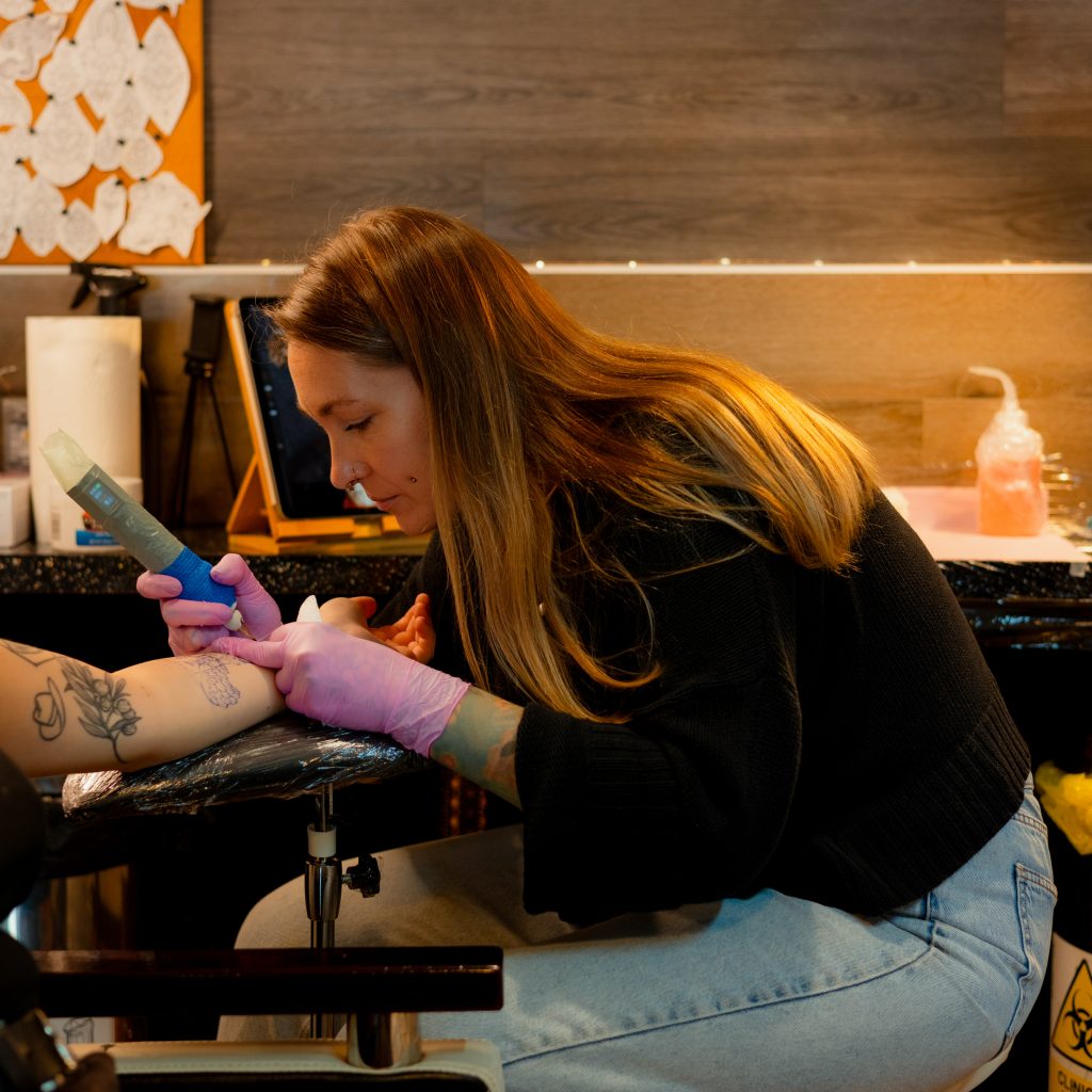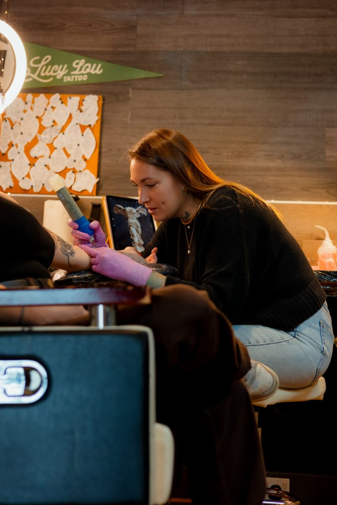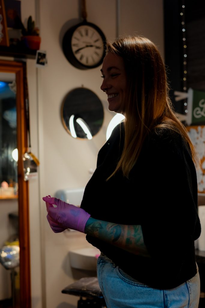 Based at Tattoo Crue in Paignton, Lucy is a vibrant and expressive tattoo artist whose work radiates creativity and confidence. Her chair is a space filled with laughter, warmth, and genuine connection — the kind of energy that makes every tattoo session feel like a collaboration between friends. Lucy’s artistry blends bold, colourful design with an intuitive understanding of her clients’ stories, creating work that’s both deeply personal and visually striking. Through her craft, she celebrates individuality and the empowerment that comes with wearing your art proudly on your skin.
